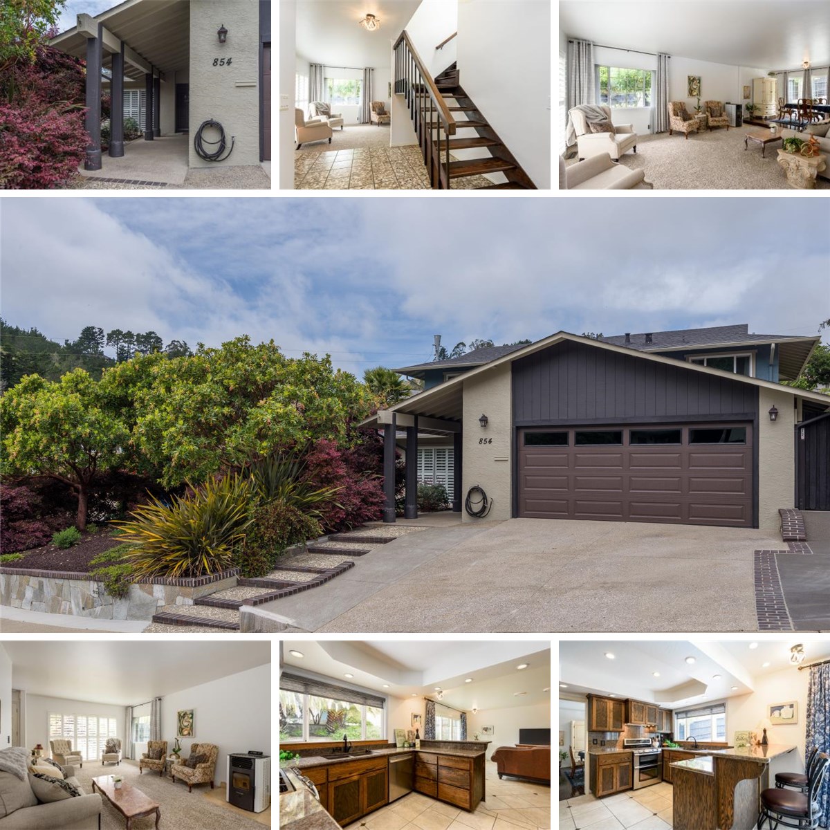 This beautifully maintained 2020 sq ft. Park Pacifica home sits on an oversized corner lot and offers a spacious two-story layout. The main level features a living room, dining room, updated kitchen, family room, and half bath. Upstairs are four generously sized bedrooms, including a primary suite, and two full baths. The updated kitchen showcases granite countertops, custom cabinetry, stainless steel appliances, and views of the rear yard and patio. The living room opens to a private front yard and includes an efficient pellet stove. The dining area provides access to the landscaped backyard. The family room off the kitchen is ideal for entertaining with a wet bar, walk-in pantry, and extra storage, plus direct yard access. Additional highlights include a two-car garage with finished acrylic floor, storage, and workshop area. The outdoor space features a large patio, detached office or guest room, side yard with storage shed, outdoor shower, and multiple fruit trees.